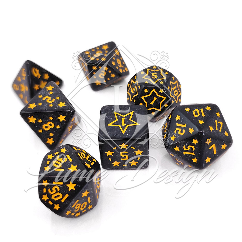Zestaw Kości RPG Akrylowe Czarne w Gwiazdki Brokat DnD