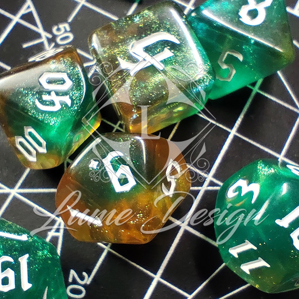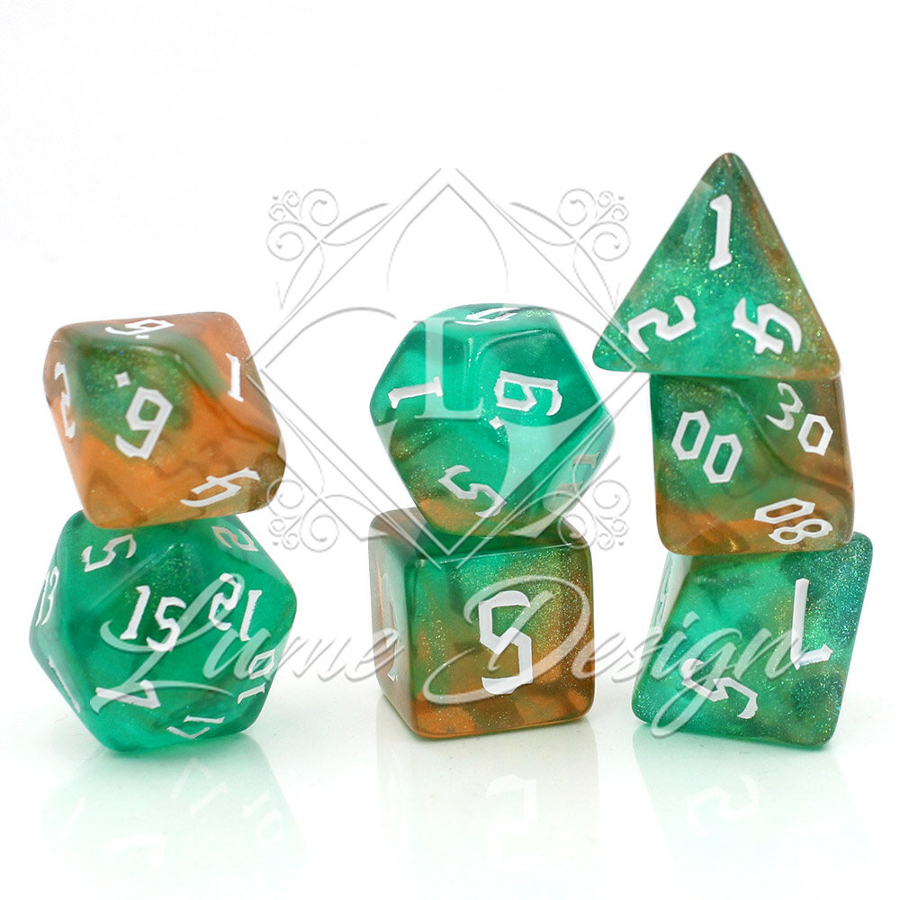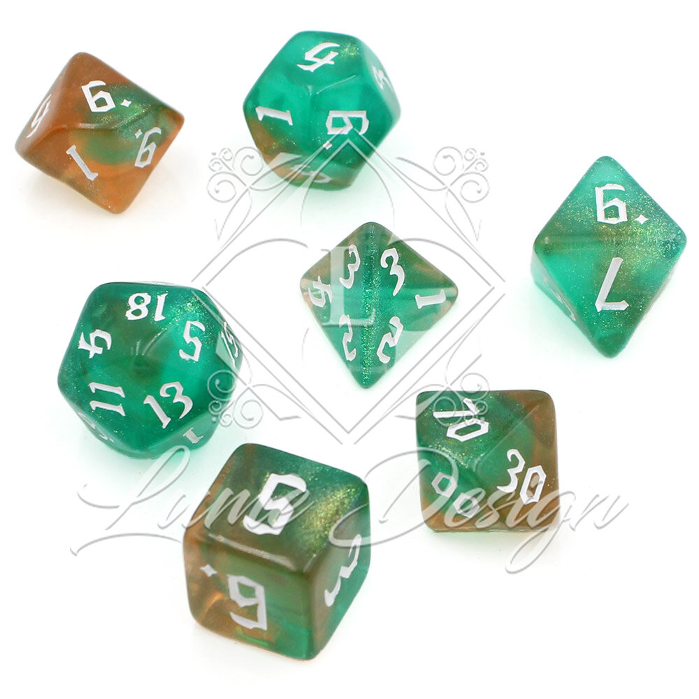 Zestaw Kości RPG Zielone Brązowe Brokat DnD