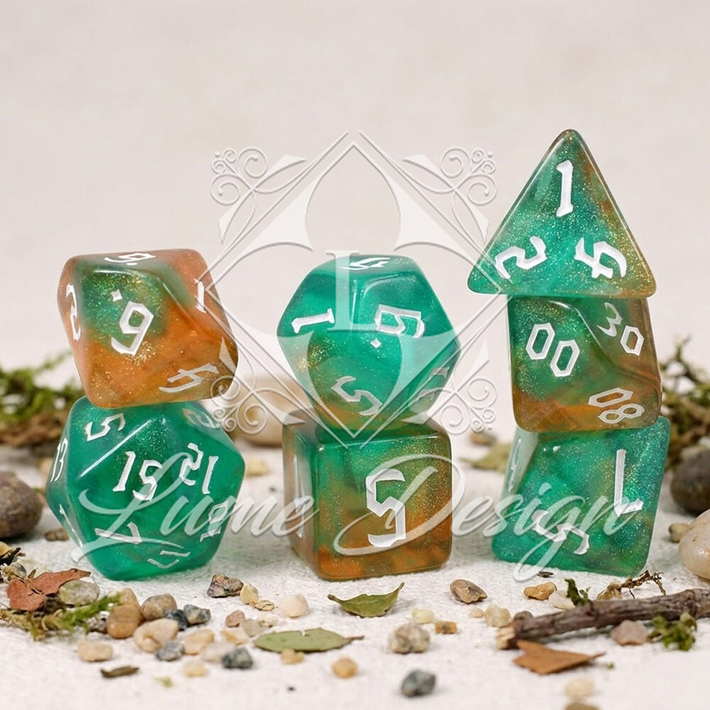 To kości dla tych, którzy nie boją się pobrudzić rąk. Idealnie oddają klimat starych puszcz, mglistych mokradeł i zapomnianych ścieżek. Łączą w sobie życie (zieleń/turkus) z naturą i rozkładem (brąz/pomarańcz). Pachną przygodą, mchem i starożytną magią druidów.