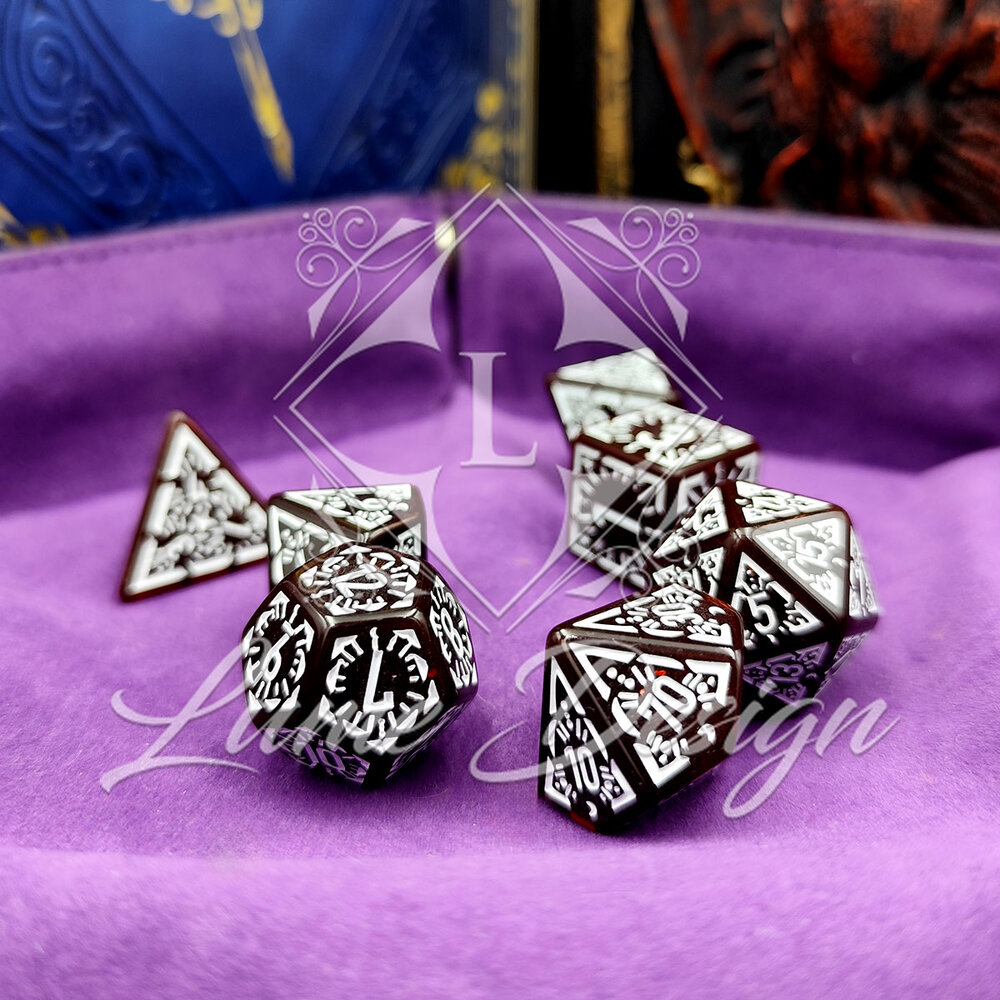 Kości inspirowane są starożytnymi runami i magią zaklętą w symbolach. Ozdobne wzory nadają im fantastyczny charakter, przywodząc na myśl artefakty z dawnych epok.