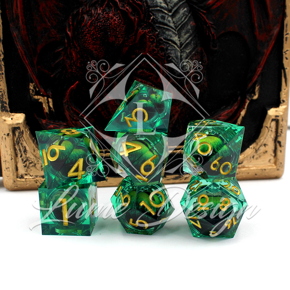 Zestaw kości wielościennych RPG żywica zielone liquid core DnD Smocze Oko