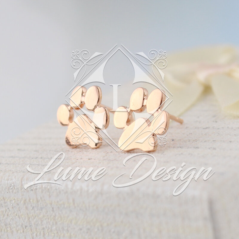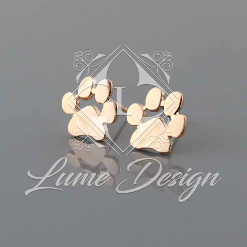 Małe i delikatne kolczyki sztyfty w kształcie odcisków zwierzęcych łapek.